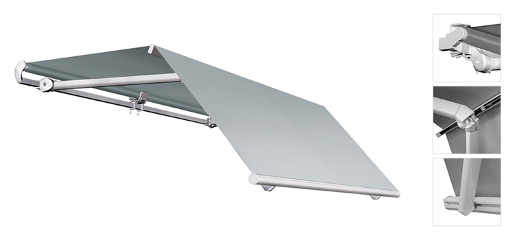 더블테라스어닝은 특별한 형태의 ARM으로 구성된 고급차양막으로, 기존의 어닝과 달리 원하는대로 각도 조절을 할 수 있습니다.